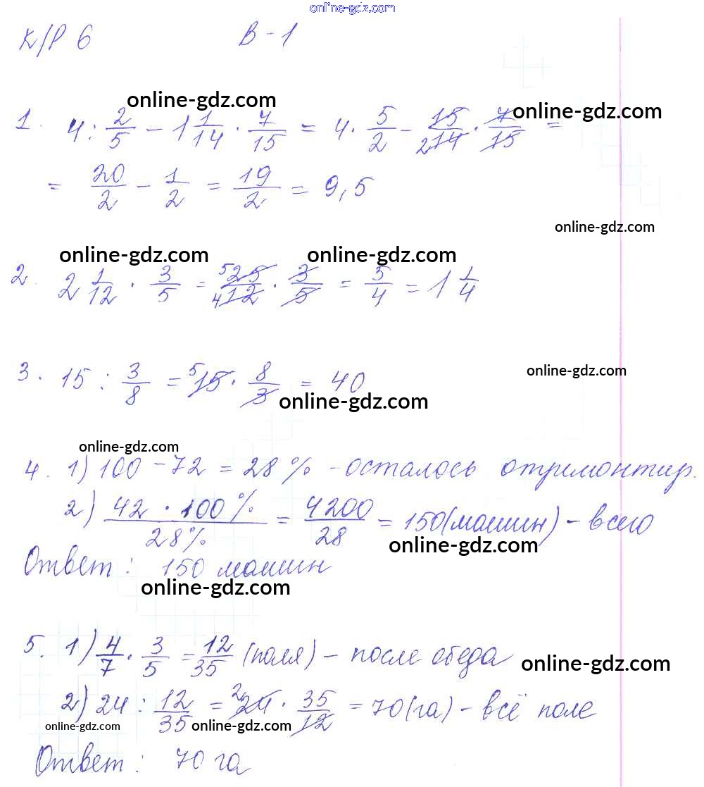 Готовые домашние задания по Математике за 6 класс Контрольные работы Дудницын, Кронгауз УМК 2013 - КР-6. Варианты 1