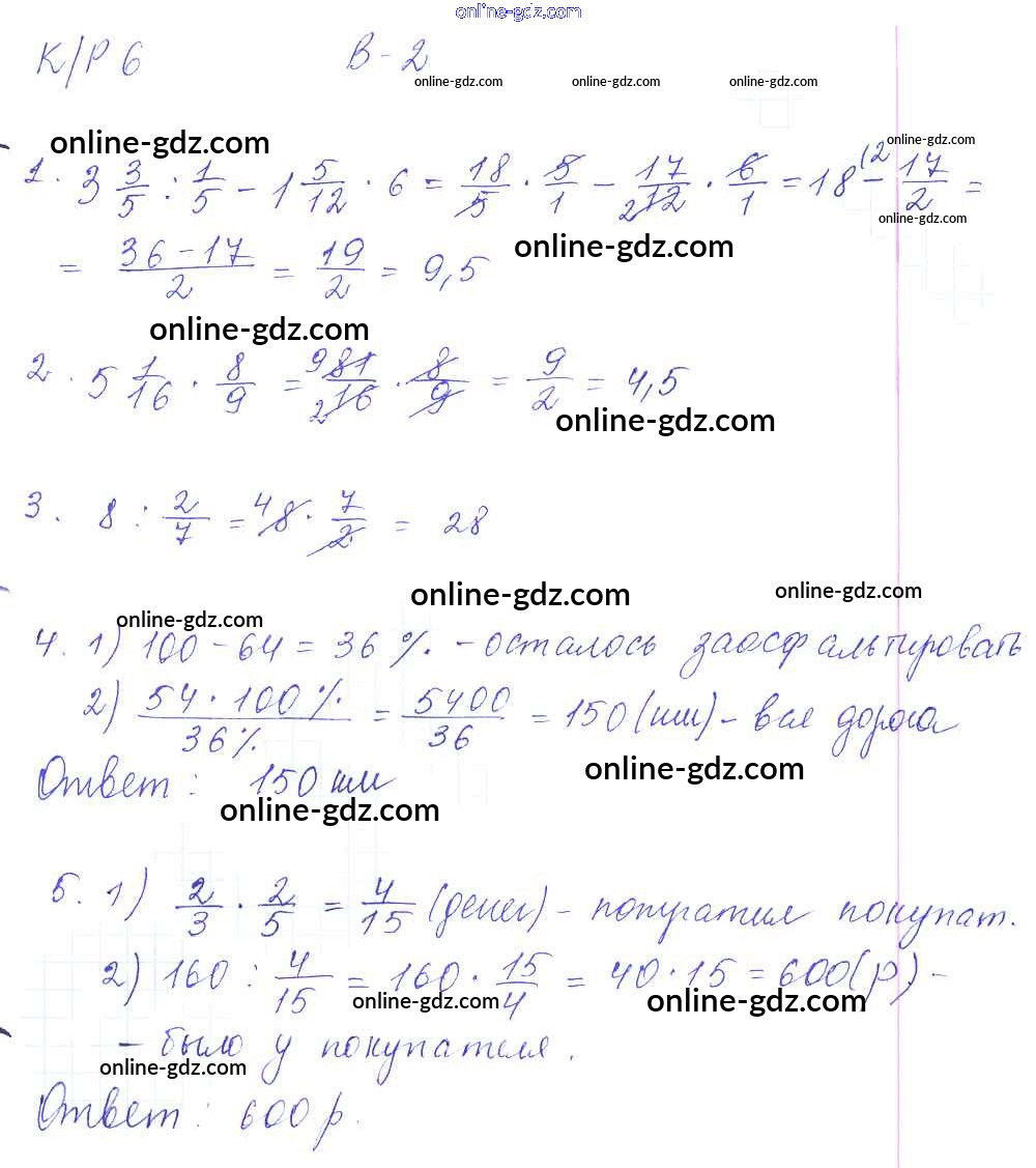 Готовые домашние задания по Математике за 6 класс Контрольные работы Дудницын, Кронгауз УМК 2013 - КР-6. Варианты 2