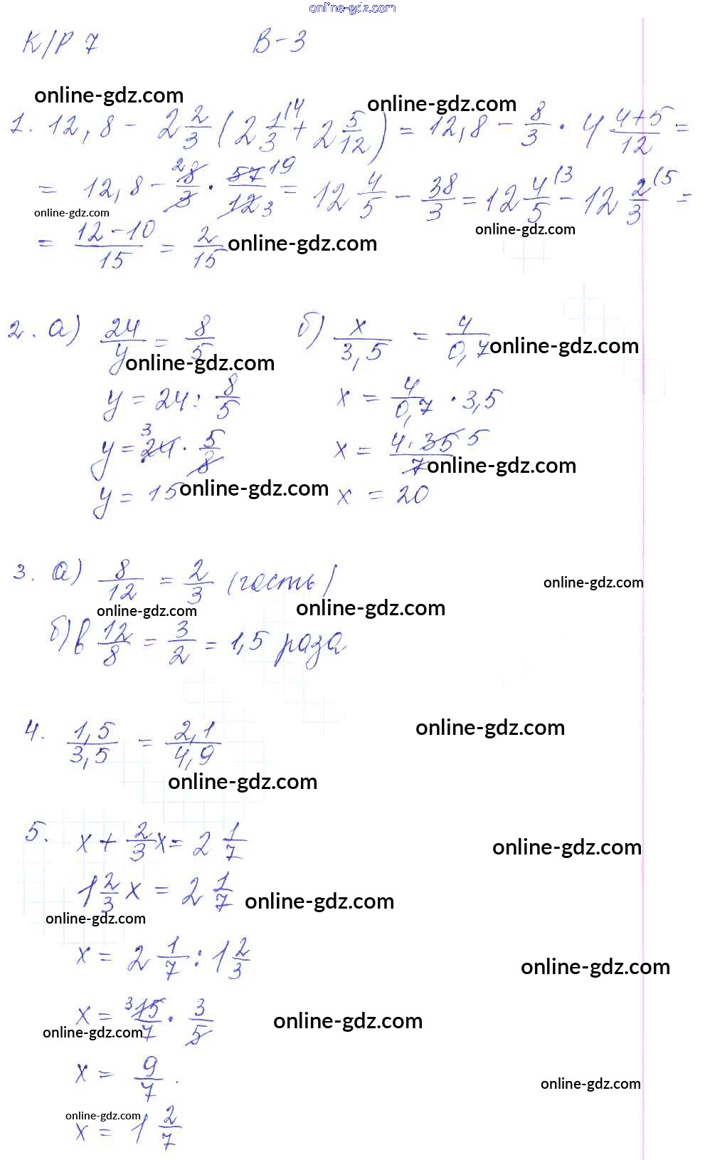 Готовые домашние задания по Математике за 6 класс Контрольные работы Дудницын, Кронгауз УМК 2013 - КР-7. Варианты 3