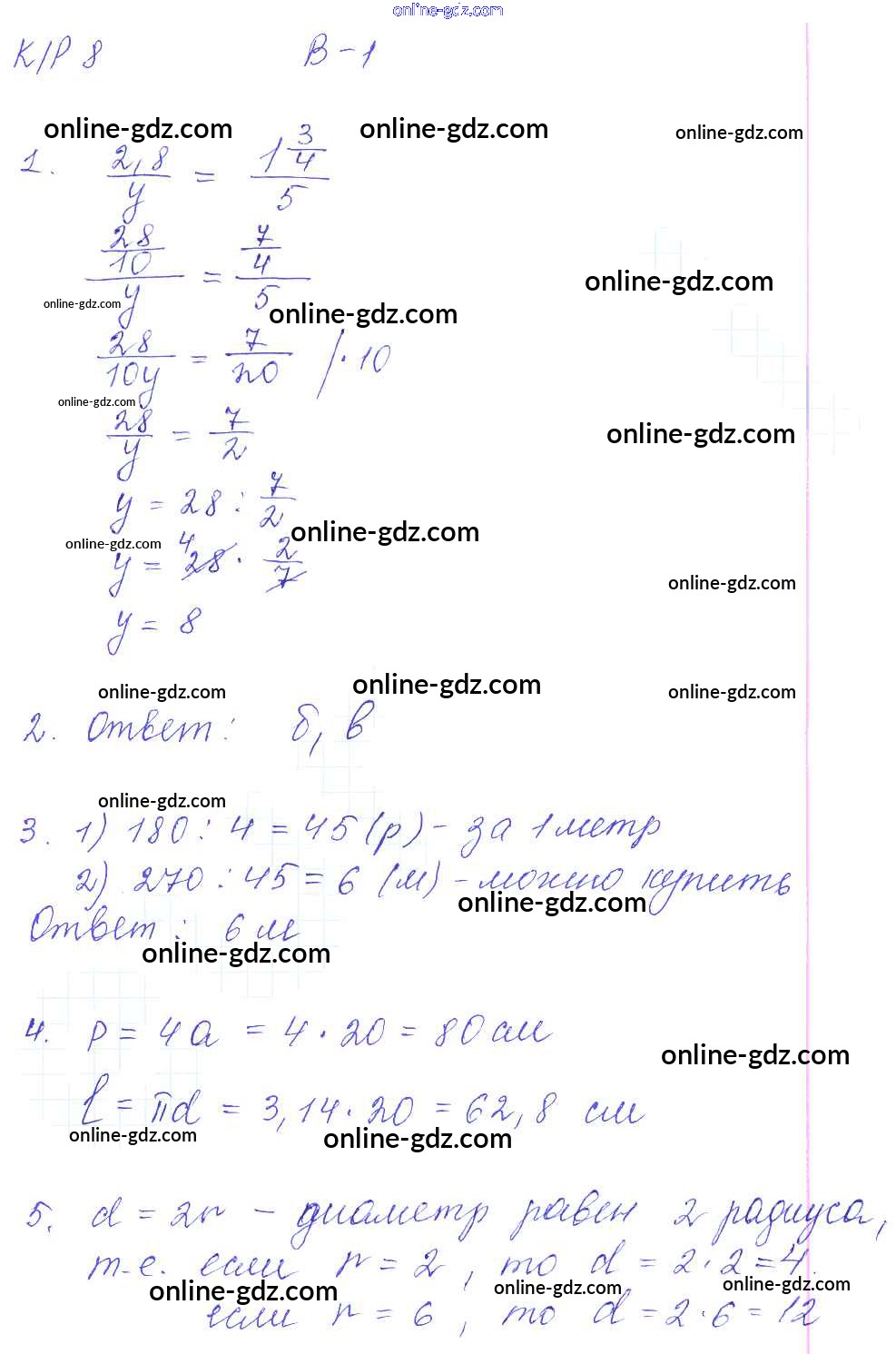 Готовые домашние задания по Математике за 6 класс Контрольные работы Дудницын, Кронгауз УМК 2013 - КР-8. Варианты 1