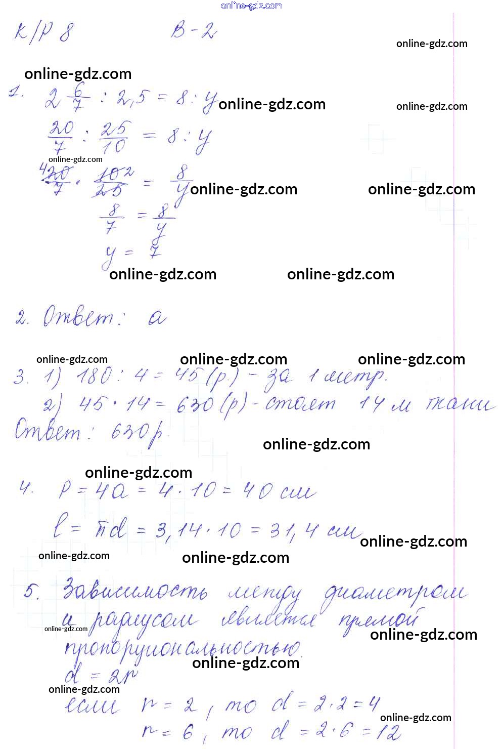 Готовые домашние задания по Математике за 6 класс Контрольные работы Дудницын, Кронгауз УМК 2013 - КР-8. Варианты 2
