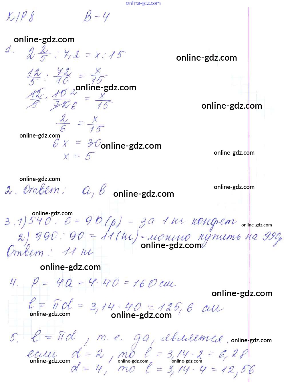 Готовые домашние задания по Математике за 6 класс Контрольные работы Дудницын, Кронгауз УМК 2013 - КР-8. Варианты 4