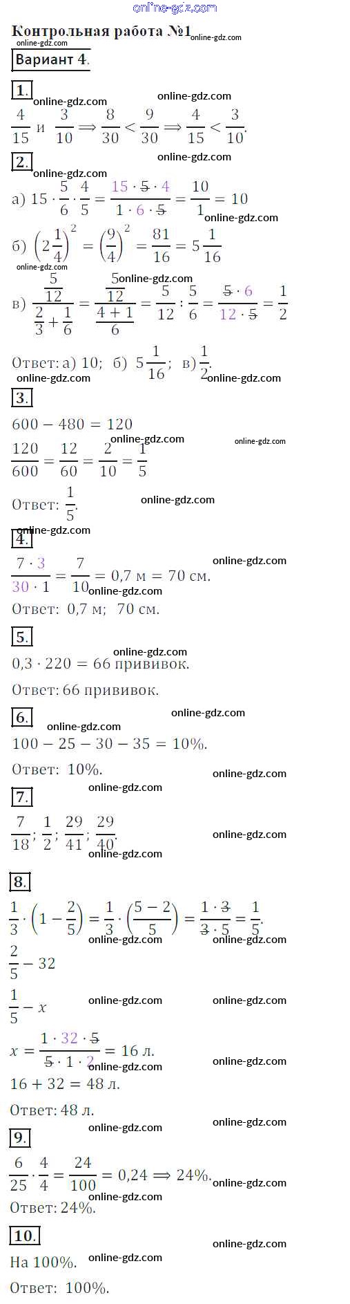 Готовые домашние задания по Математике за 6 класс Контрольные работы Кузнецова, Минаева 2017 - КР-1. Варианты 4