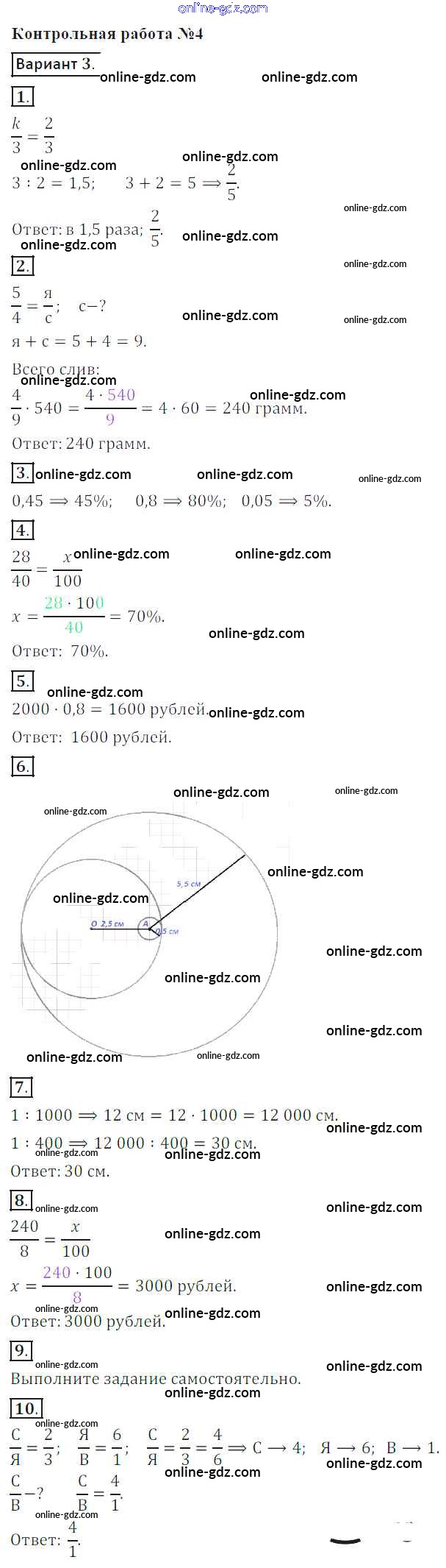 Готовые домашние задания по Математике за 6 класс Контрольные работы Кузнецова, Минаева 2017 - КР-4. Варианты 3