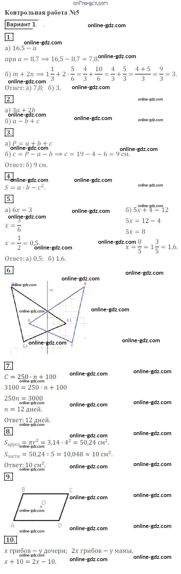Готовые домашние задания по Математике за 6 класс Контрольные работы Кузнецова, Минаева 2017 - КР-5. Варианты 1