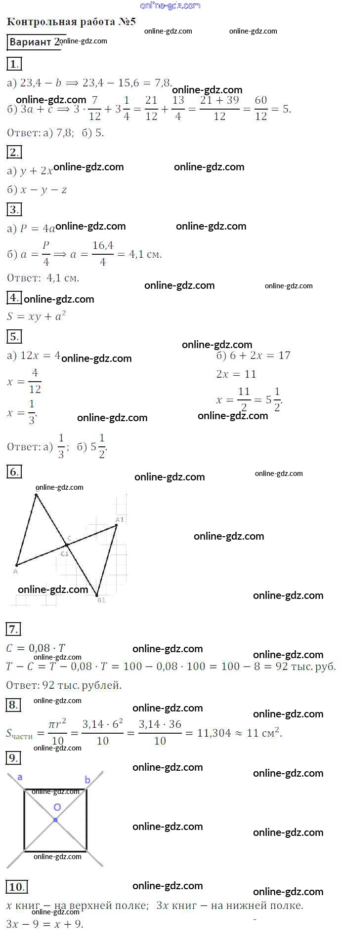 Готовые домашние задания по Математике за 6 класс Контрольные работы Кузнецова, Минаева 2017 - КР-5. Варианты 2