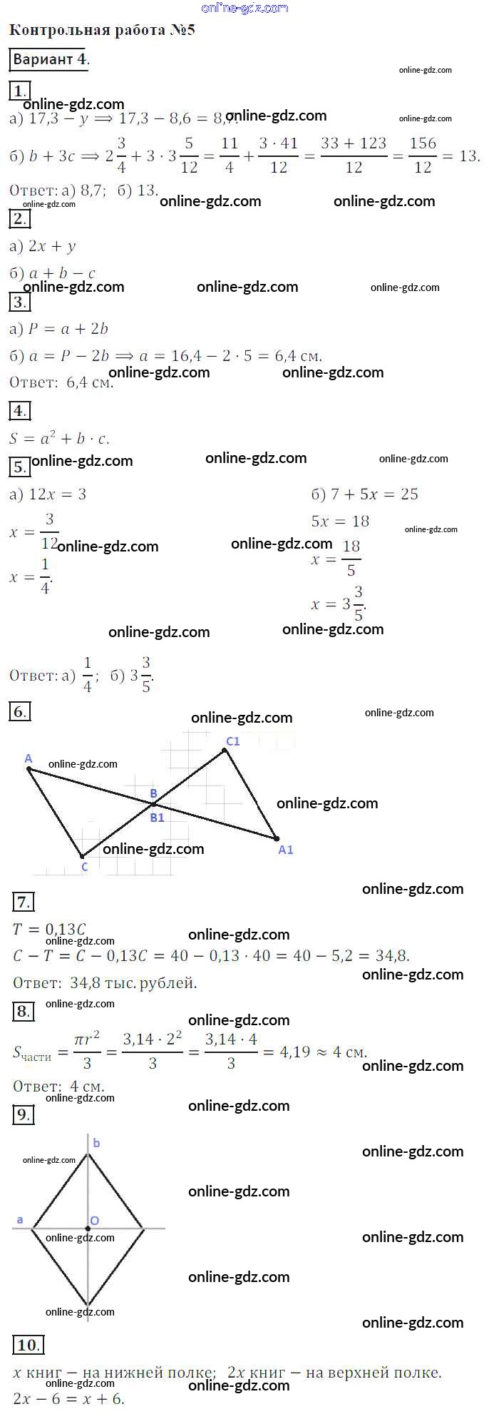 Готовые домашние задания по Математике за 6 класс Контрольные работы Кузнецова, Минаева 2017 - КР-5. Варианты 4