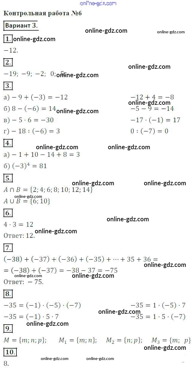 Готовые домашние задания по Математике за 6 класс Контрольные работы Кузнецова, Минаева 2017 - КР-6. Варианты 3
