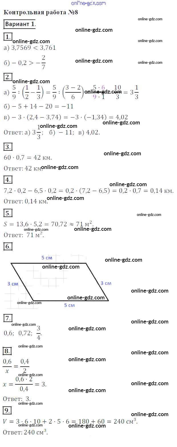 Готовые домашние задания по Математике за 6 класс Контрольные работы Кузнецова, Минаева 2017 - КР-8. Варианты 1