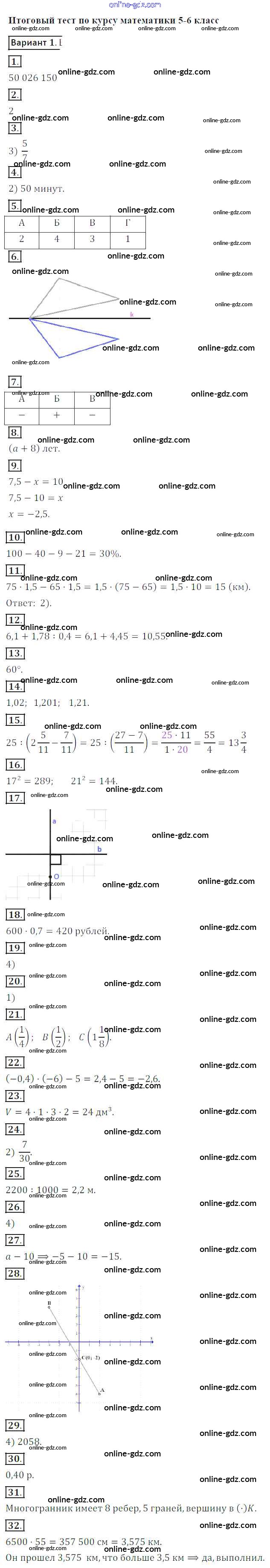 Готовые домашние задания по Математике за 6 класс Контрольные работы Кузнецова, Минаева 2017 - Итоговый тест 1