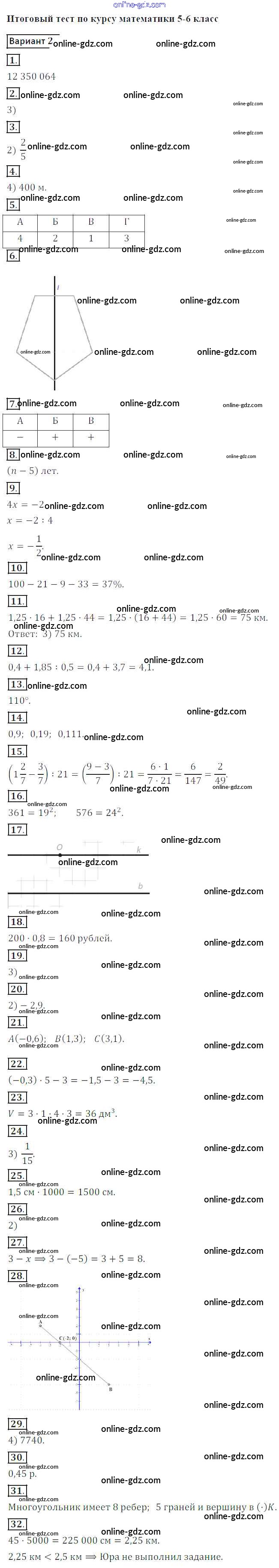 Готовые домашние задания по Математике за 6 класс Контрольные работы Кузнецова, Минаева 2017 - Итоговый тест 2