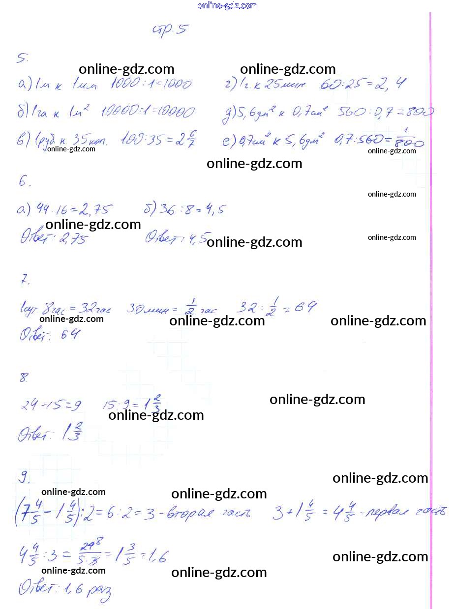 Готовые домашние задания по Математике за 6 класс Рабочая тетрадь Ерина УМК 2017 - Часть 1. Страницы 5