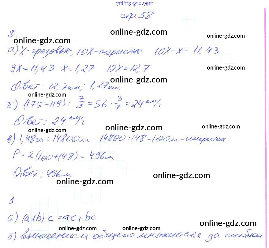 Готовые домашние задания по Математике за 6 класс Рабочая тетрадь Ерина УМК 2017 - Часть 1. Страницы 58