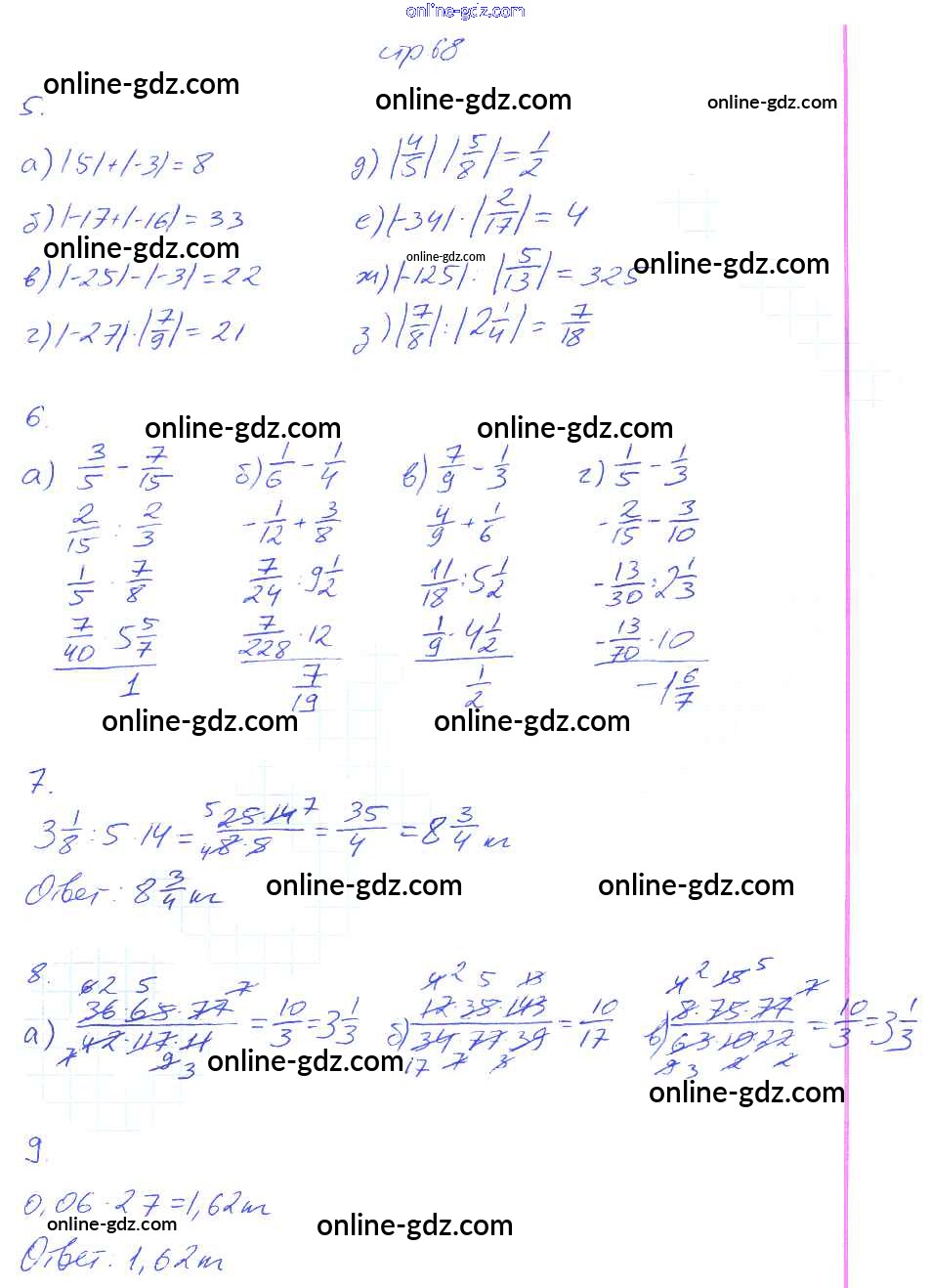 Готовые домашние задания по Математике за 6 класс Рабочая тетрадь Ерина УМК 2017 - Часть 1. Страницы 68