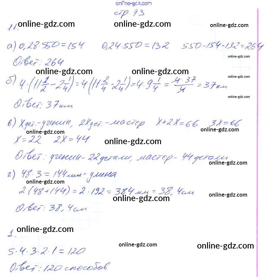Готовые домашние задания по Математике за 6 класс Рабочая тетрадь Ерина УМК 2017 - Часть 1. Страницы 73