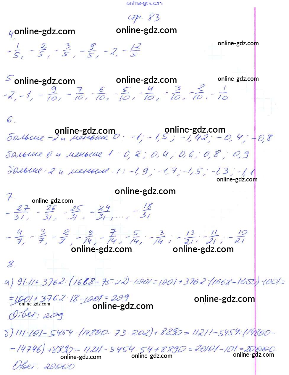 Готовые домашние задания по Математике за 6 класс Рабочая тетрадь Ерина УМК 2017 - Часть 1. Страницы 83