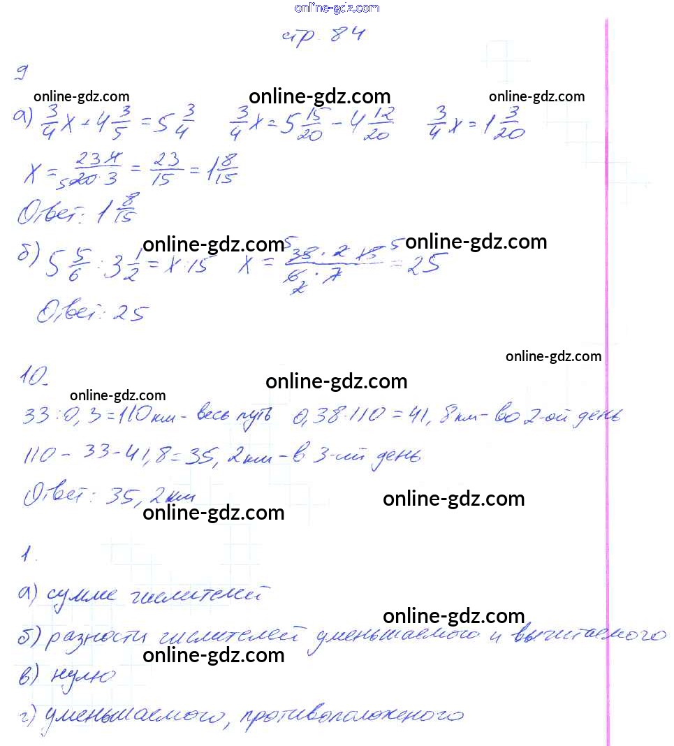 Готовые домашние задания по Математике за 6 класс Рабочая тетрадь Ерина УМК 2017 - Часть 1. Страницы 84