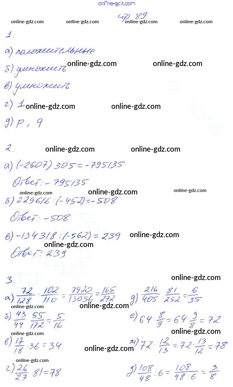 Готовые домашние задания по Математике за 6 класс Рабочая тетрадь Ерина УМК 2017 - Часть 1. Страницы 89