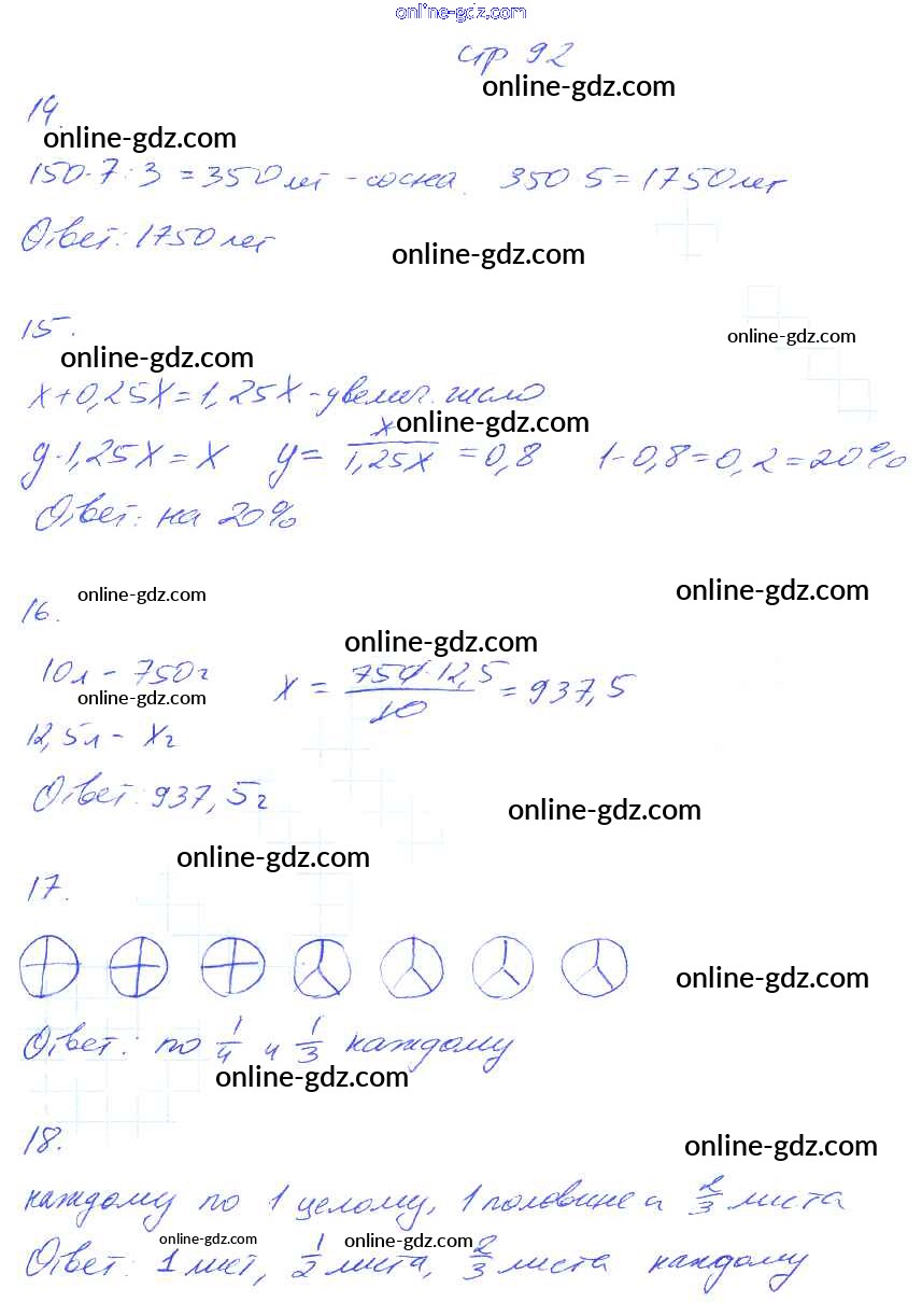 Готовые домашние задания по Математике за 6 класс Рабочая тетрадь Ерина УМК 2017 - Часть 1. Страницы 92