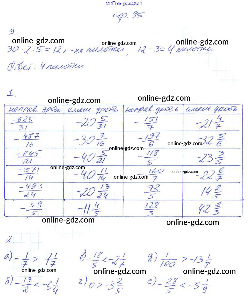 Готовые домашние задания по Математике за 6 класс Рабочая тетрадь Ерина УМК 2017 - Часть 1. Страницы 95