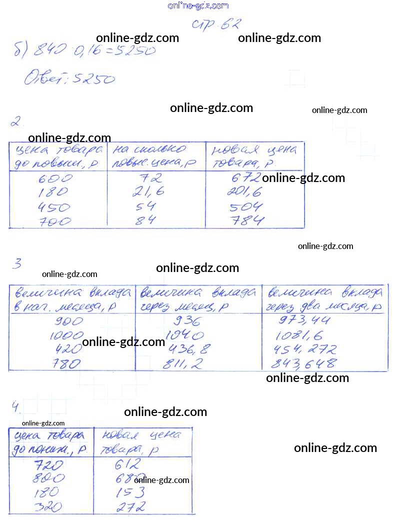 Готовые домашние задания по Математике за 6 класс Рабочая тетрадь Ерина УМК 2017 - Часть 2. Страницы 62
