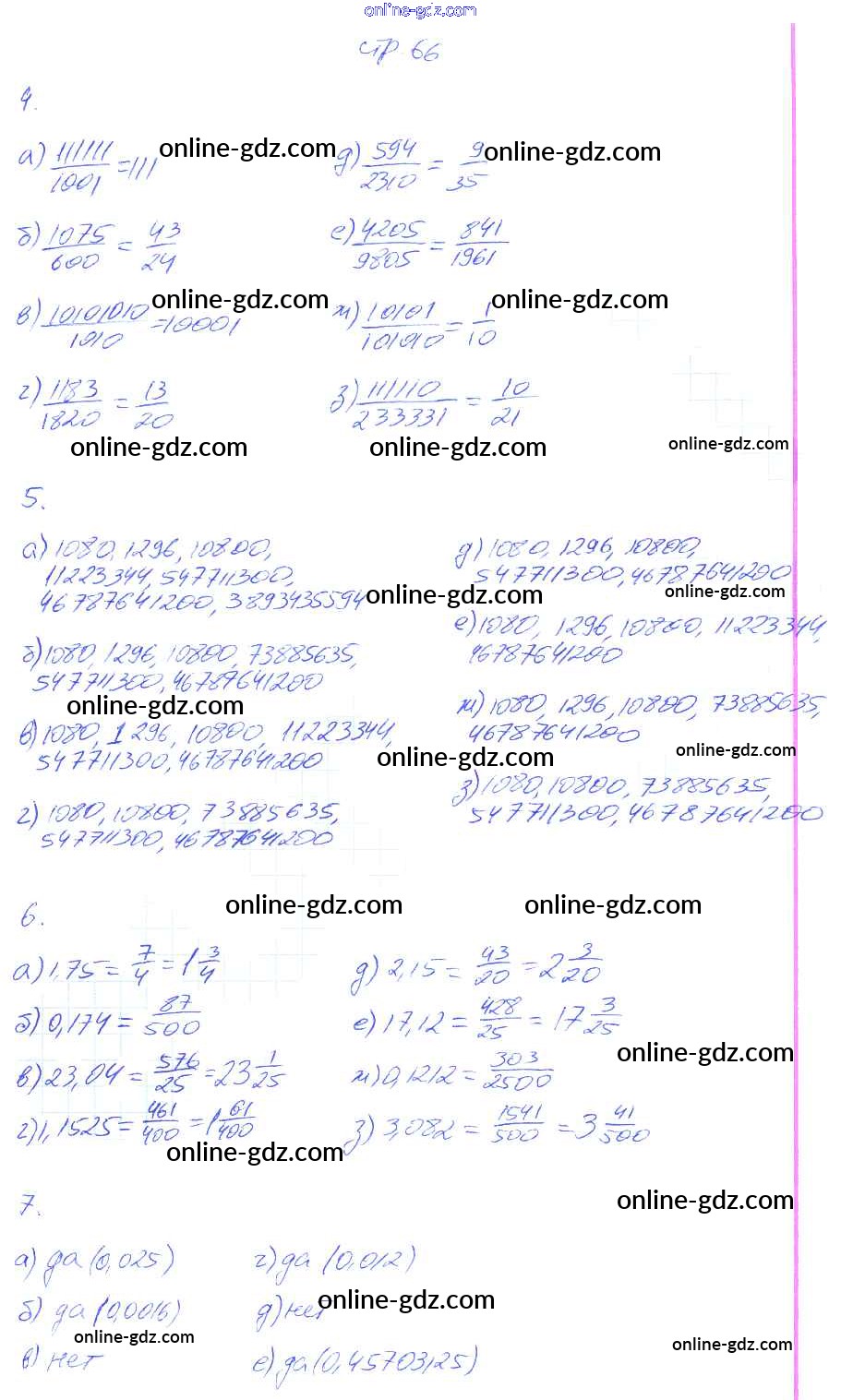 Готовые домашние задания по Математике за 6 класс Рабочая тетрадь Ерина УМК 2017 - Часть 2. Страницы 66