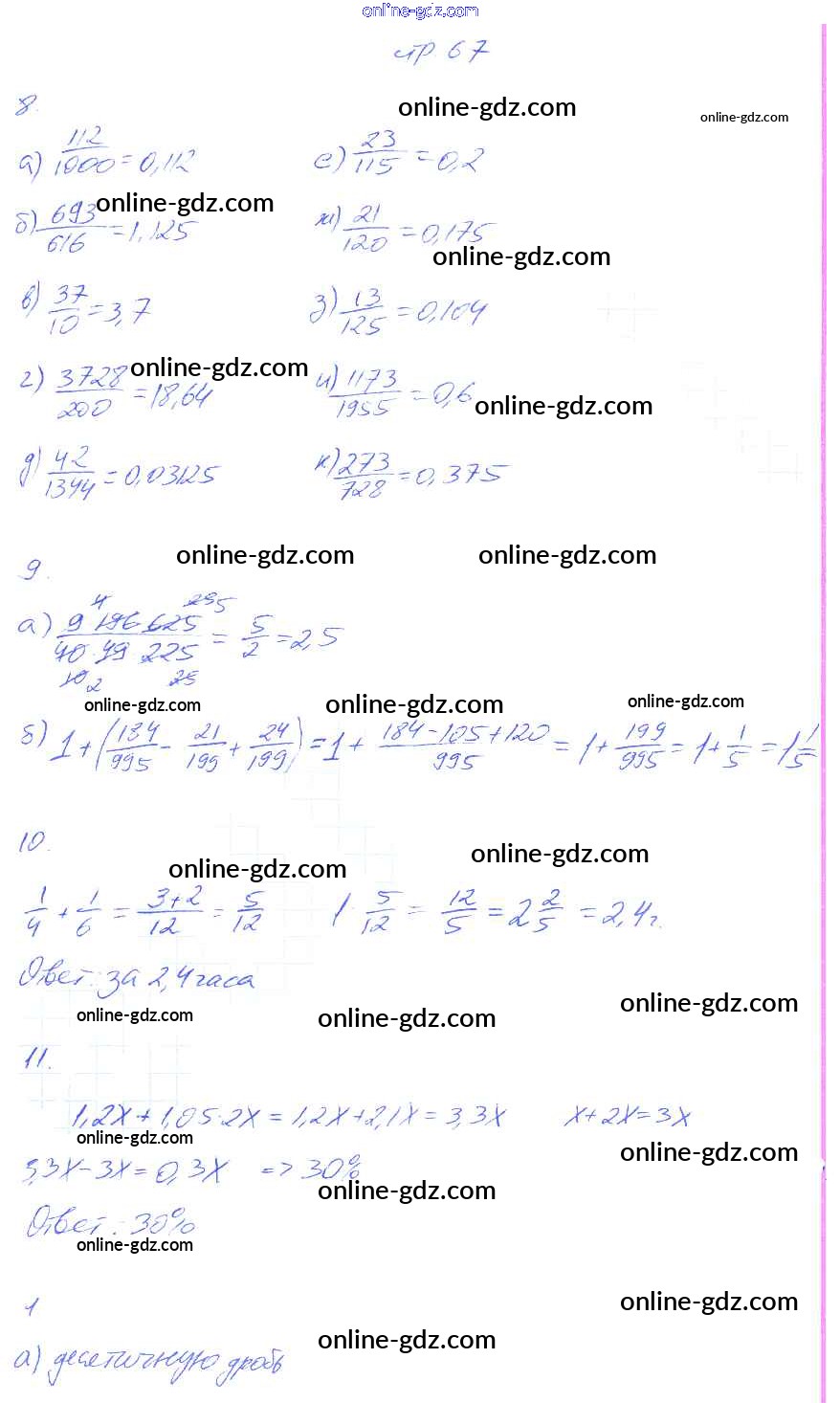Готовые домашние задания по Математике за 6 класс Рабочая тетрадь Ерина УМК 2017 - Часть 2. Страницы 67