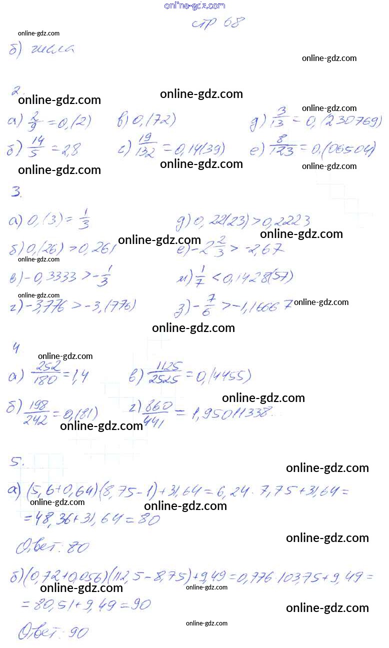 Готовые домашние задания по Математике за 6 класс Рабочая тетрадь Ерина УМК 2017 - Часть 2. Страницы 68