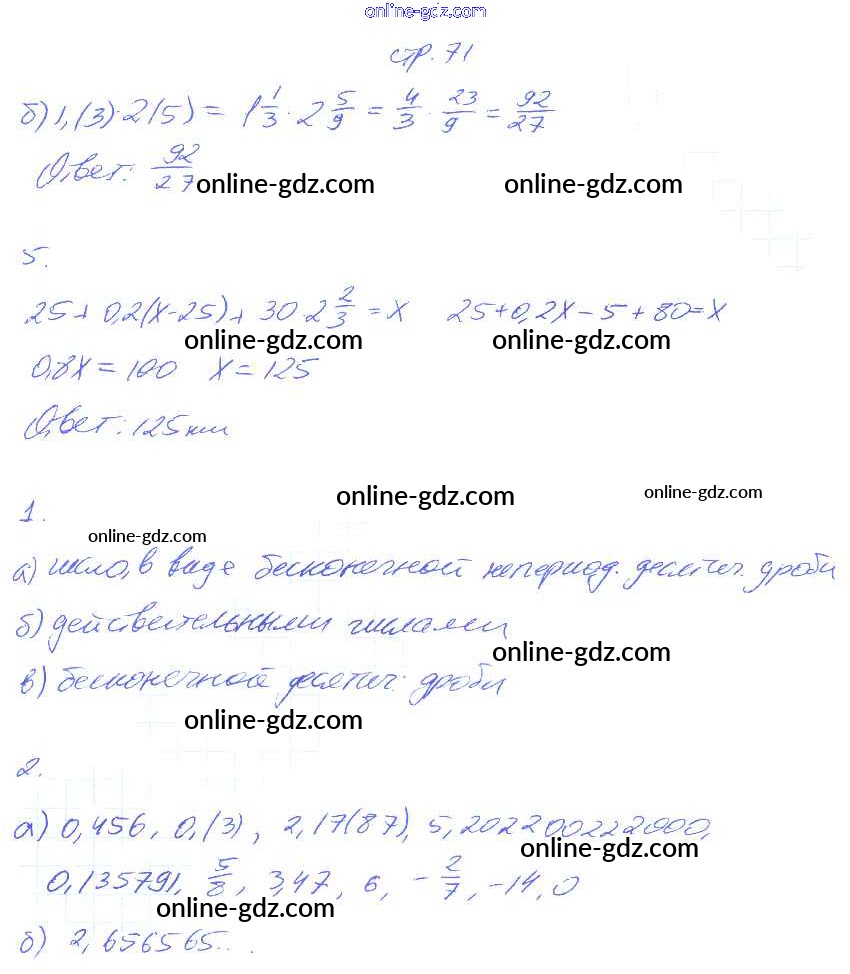 Готовые домашние задания по Математике за 6 класс Рабочая тетрадь Ерина УМК 2017 - Часть 2. Страницы 71