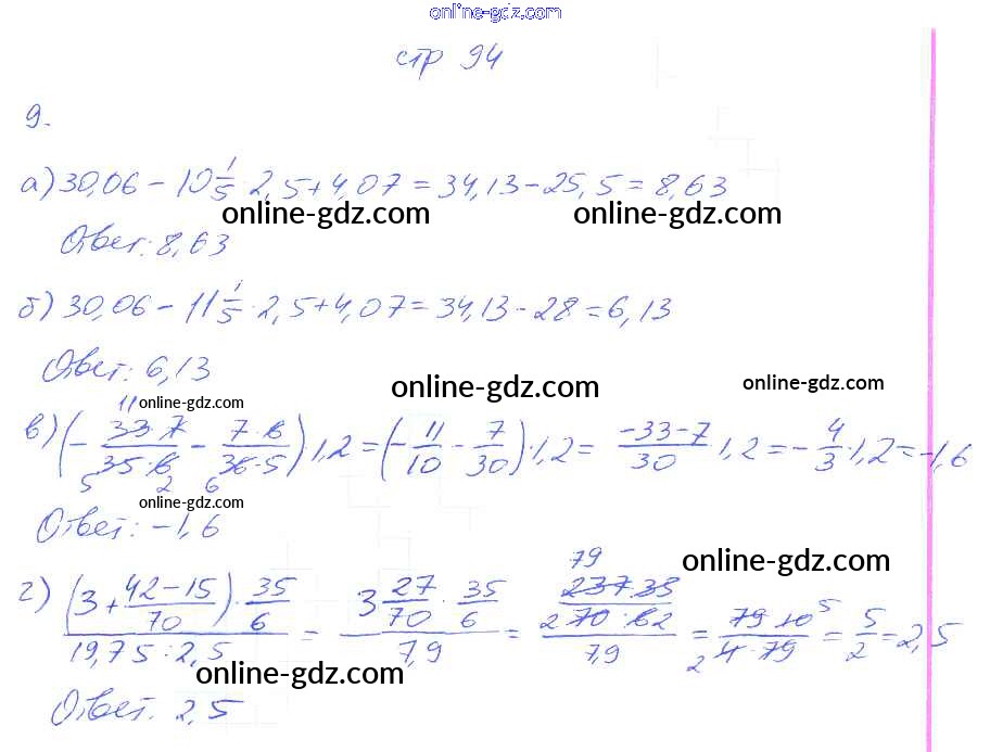 Готовые домашние задания по Математике за 6 класс Рабочая тетрадь Ерина УМК 2017 - Часть 2. Страницы 94