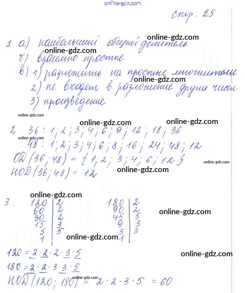Готовые домашние задания по Математике за 6 класс Рабочая тетрадь Ерина УМК 2020 - Часть 1. Страницы 25
