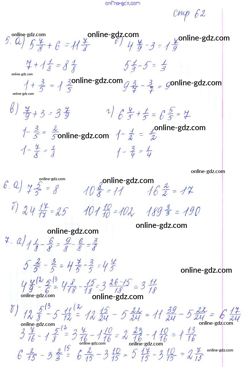 Готовые домашние задания по Математике за 6 класс Рабочая тетрадь Ерина УМК 2020 - Часть 1. Страницы 62