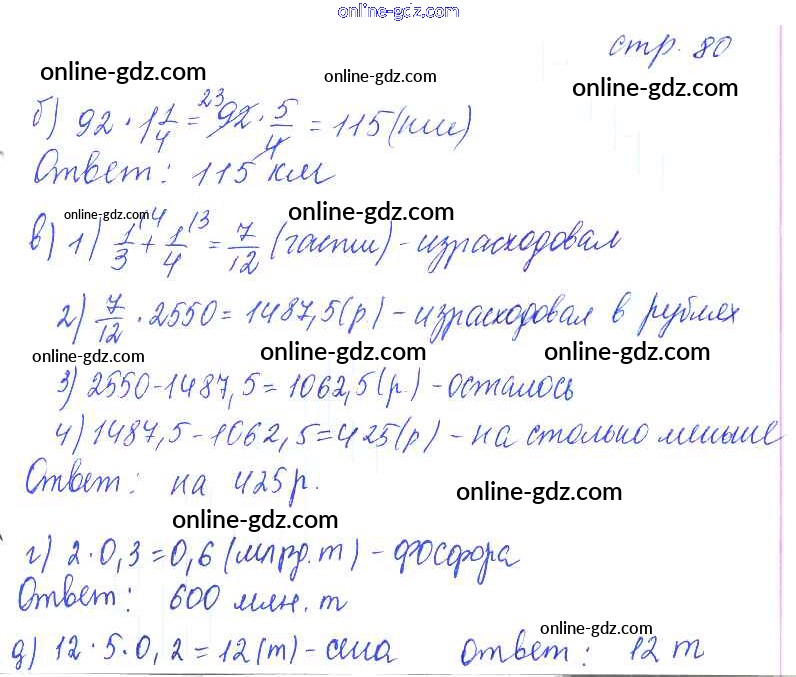 Готовые домашние задания по Математике за 6 класс Рабочая тетрадь Ерина УМК 2020 - Часть 1. Страницы 80