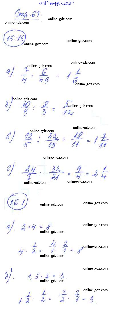 Готовые домашние задания по Математике за 6 класс Рабочая тетрадь Зубарева 2016 - Часть 1. Страницы 67
