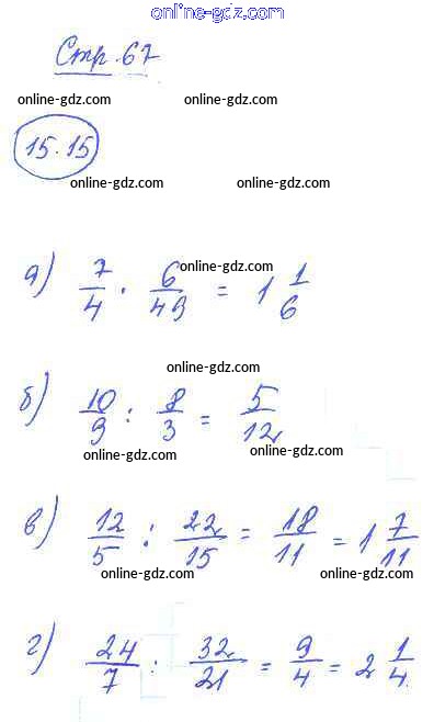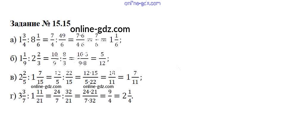Готовые домашние задания по Математике за 6 класс Рабочая тетрадь Зубарева 2016 - §15. Умножение и деление обыкновенных дробей 15