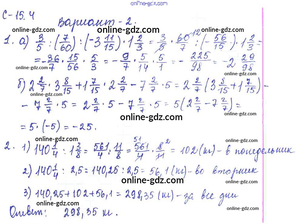 Готовые домашние задания по Математике за 6 класс Самостоятельные работы Зубарева, Лепешонкова УМК 2020 - 4. Варианты СР-15 2