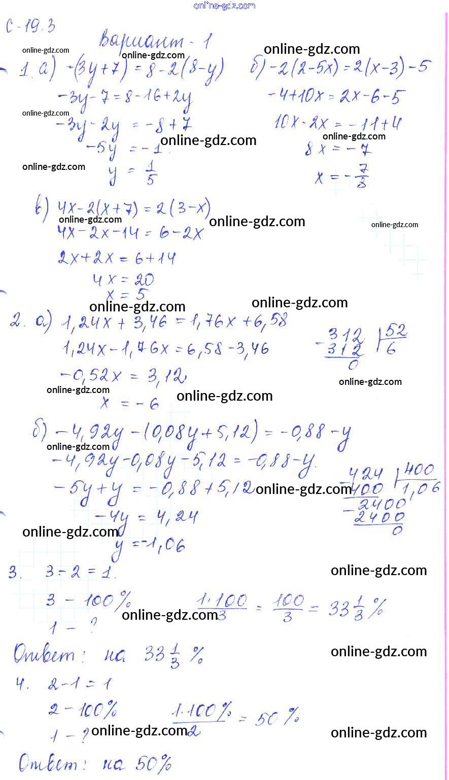 Готовые домашние задания по Математике за 6 класс Самостоятельные работы Зубарева, Лепешонкова УМК 2020 - 3. Варианты СР-19 1