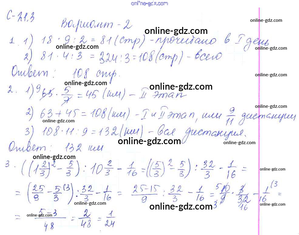 Готовые домашние задания по Математике за 6 класс Самостоятельные работы Зубарева, Лепешонкова УМК 2020 - 3. Варианты СР-21 2