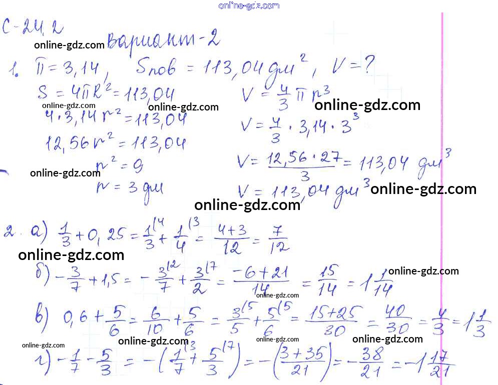 Готовые домашние задания по Математике за 6 класс Самостоятельные работы Зубарева, Лепешонкова УМК 2020 - 2. Варианты СР-24 2