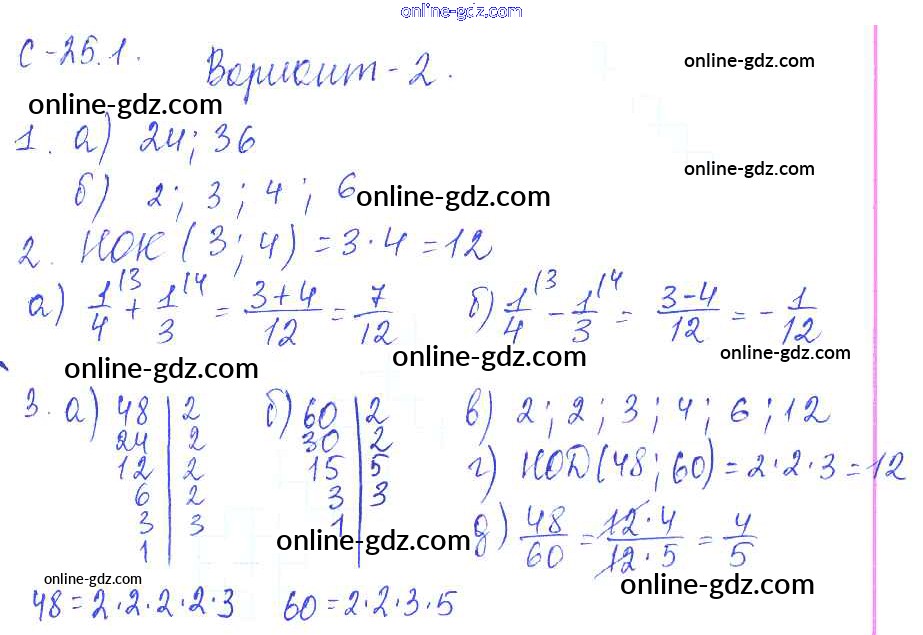 Готовые домашние задания по Математике за 6 класс Самостоятельные работы Зубарева, Лепешонкова УМК 2020 - 1. Варианты СР-25 2