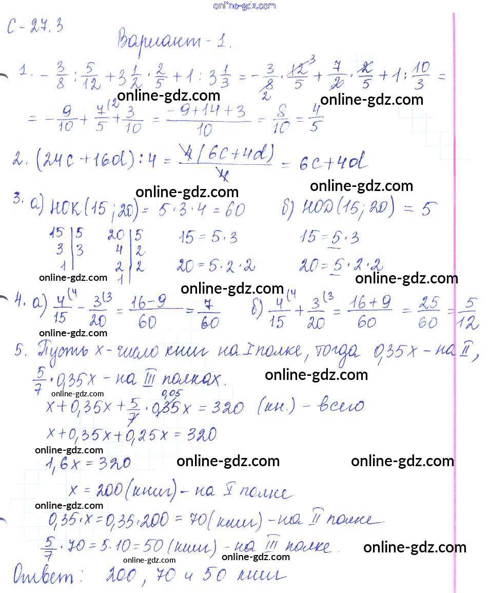 Готовые домашние задания по Математике за 6 класс Самостоятельные работы Зубарева, Лепешонкова УМК 2020 - 3. Варианты СР-27 1