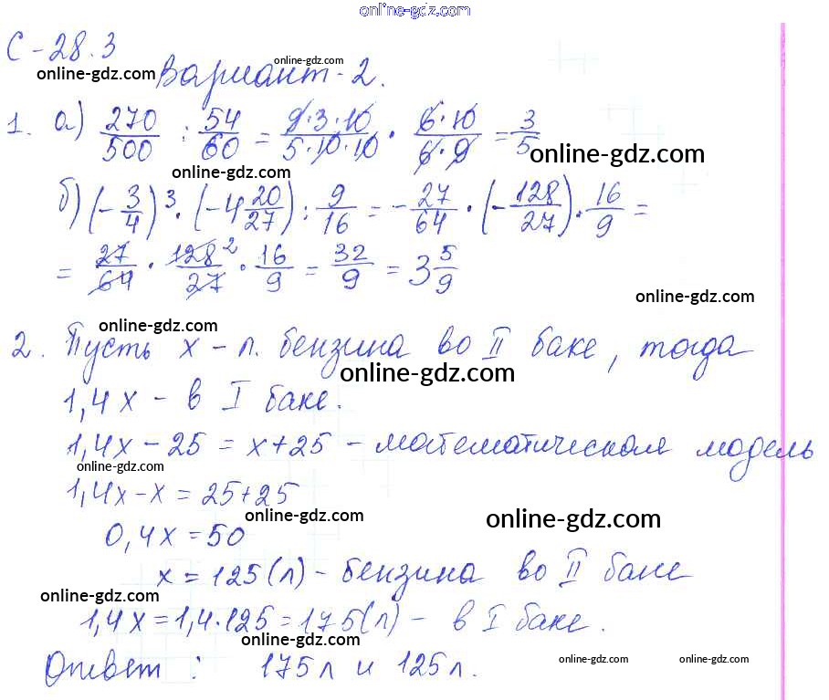 Готовые домашние задания по Математике за 6 класс Самостоятельные работы Зубарева, Лепешонкова УМК 2020 - 3. Варианты СР-28 2