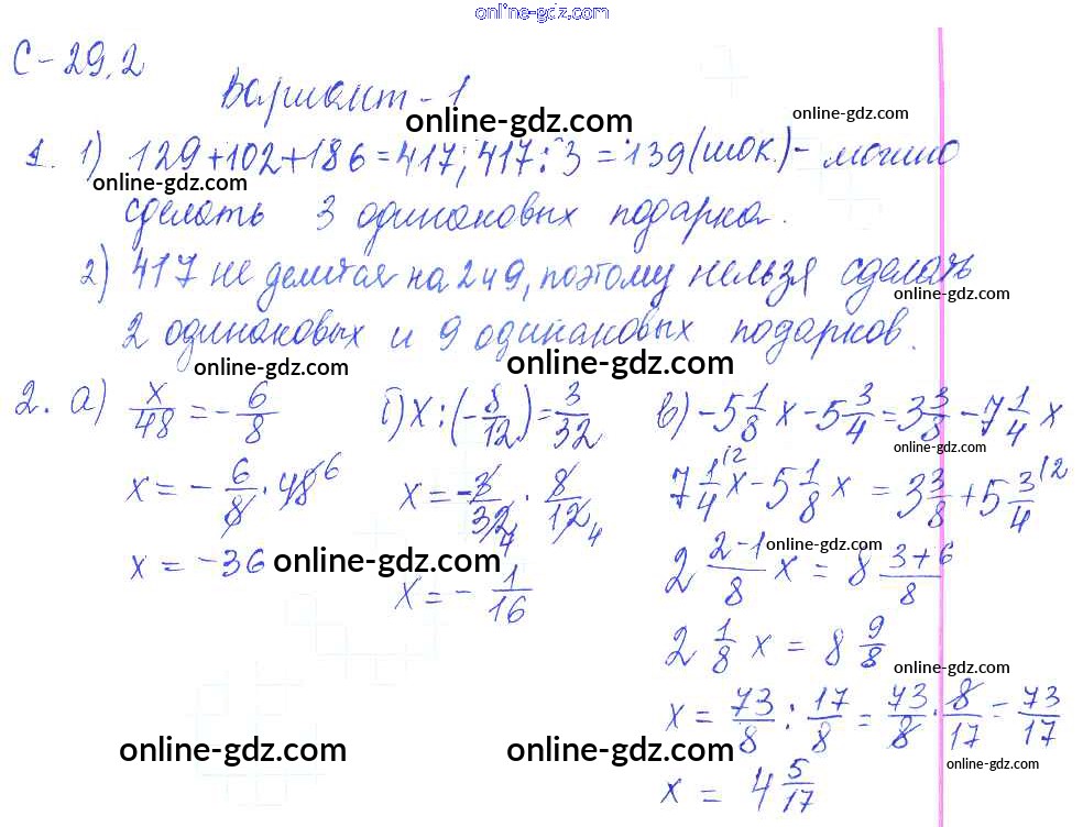 Готовые домашние задания по Математике за 6 класс Самостоятельные работы Зубарева, Лепешонкова УМК 2020 - 2. Варианты СР-29 1