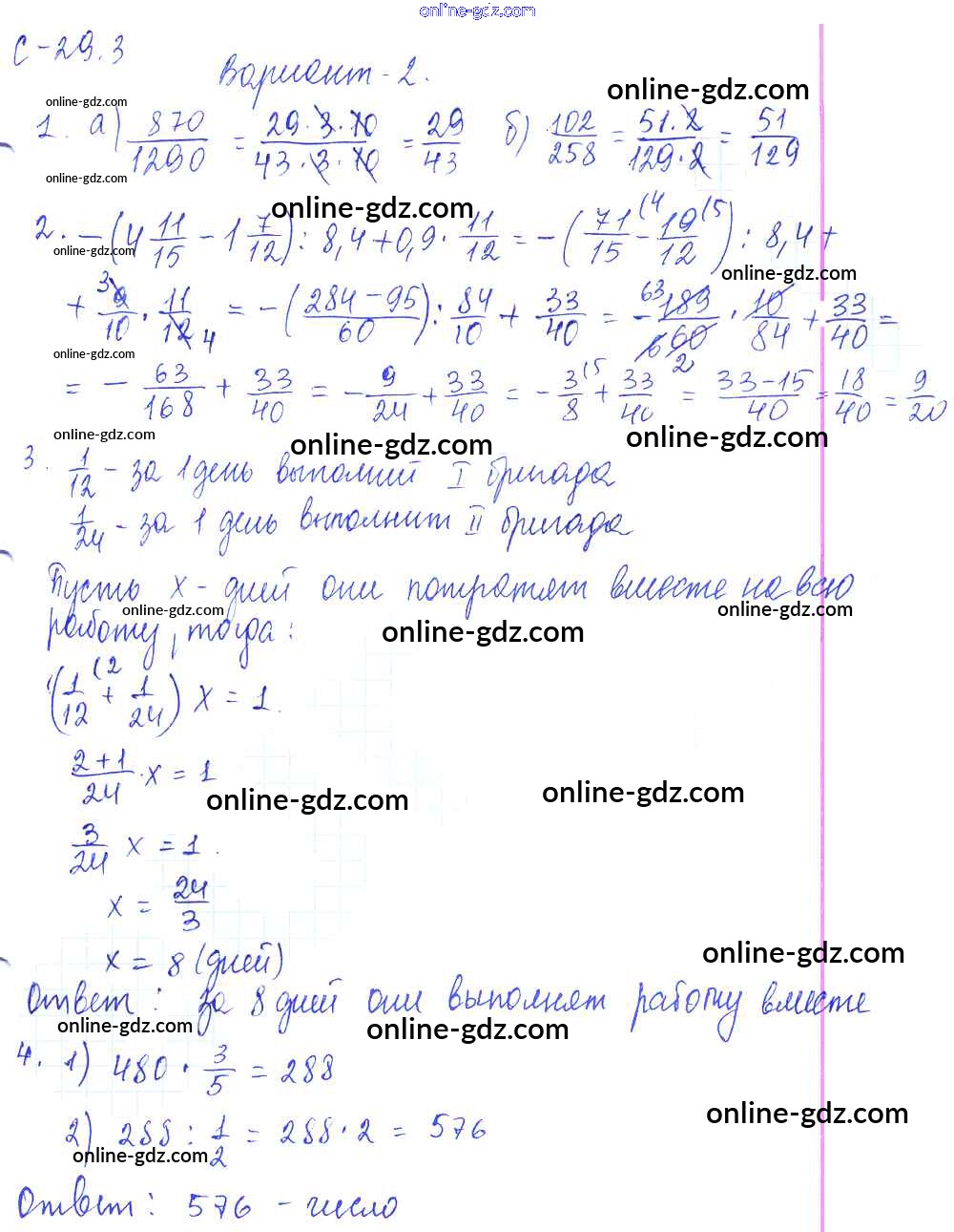 Готовые домашние задания по Математике за 6 класс Самостоятельные работы Зубарева, Лепешонкова УМК 2020 - 3. Варианты СР-29 2