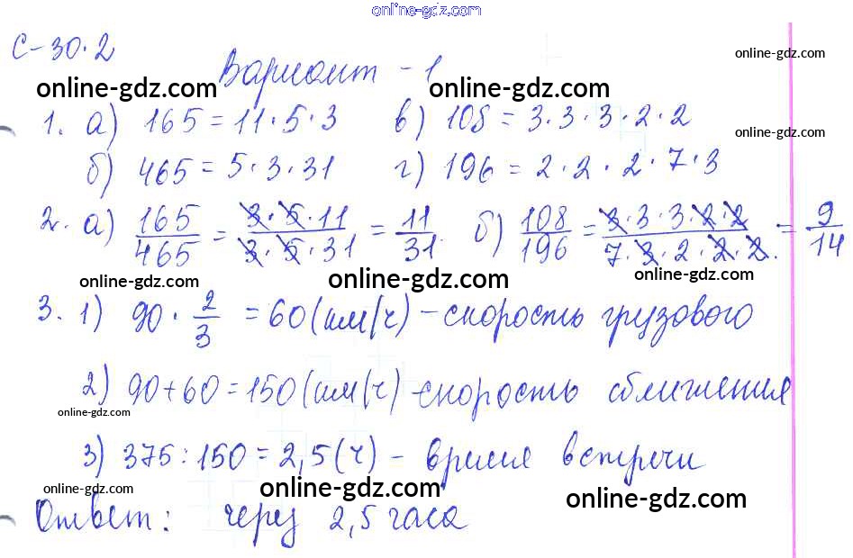 Готовые домашние задания по Математике за 6 класс Самостоятельные работы Зубарева, Лепешонкова УМК 2020 - 2. Варианты СР-30 1
