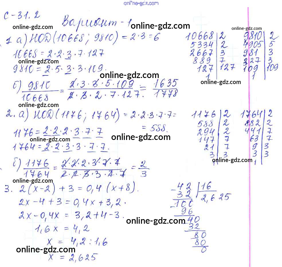 Готовые домашние задания по Математике за 6 класс Самостоятельные работы Зубарева, Лепешонкова УМК 2020 - 2. Варианты СР-31 1