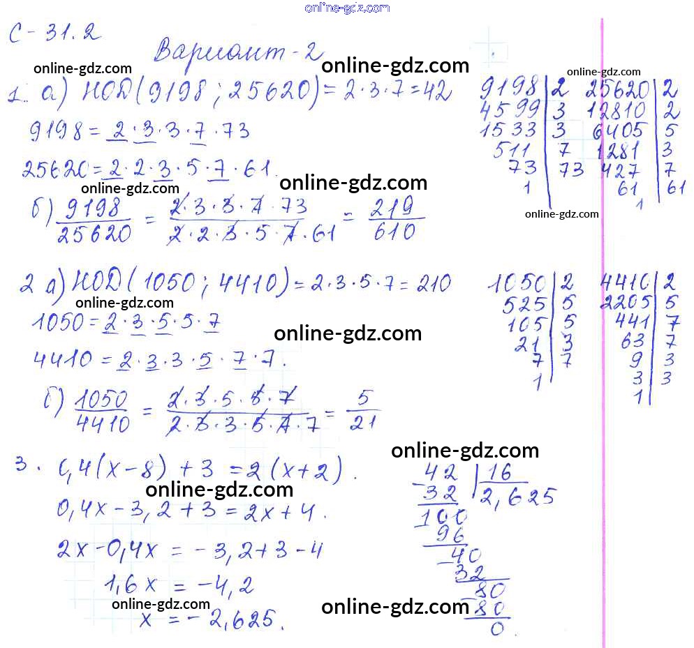Готовые домашние задания по Математике за 6 класс Самостоятельные работы Зубарева, Лепешонкова УМК 2020 - 2. Варианты СР-31 2