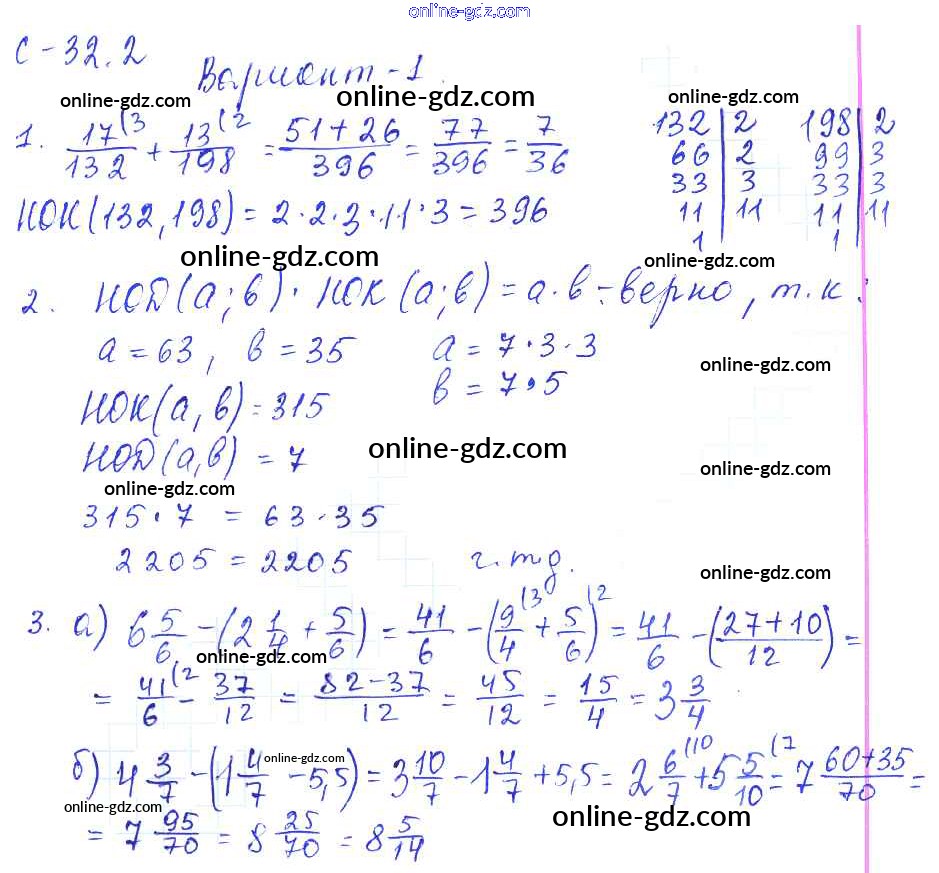 Готовые домашние задания по Математике за 6 класс Самостоятельные работы Зубарева, Лепешонкова УМК 2020 - 2. Варианты СР-32 1