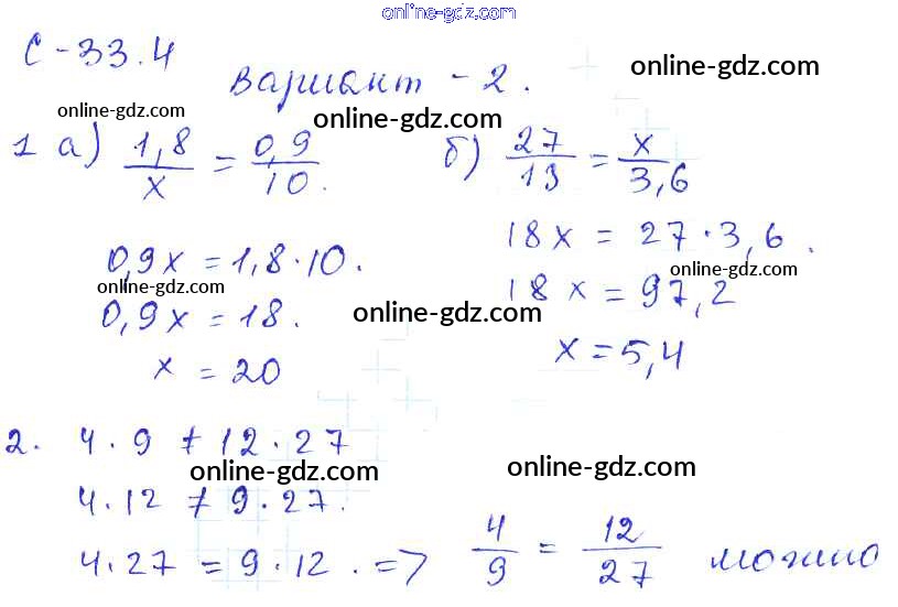 Готовые домашние задания по Математике за 6 класс Самостоятельные работы Зубарева, Лепешонкова УМК 2020 - 4. Варианты СР-33 2