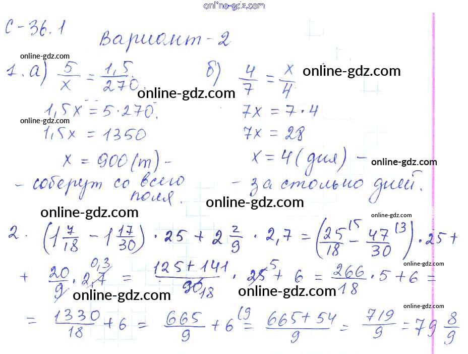 Готовые домашние задания по Математике за 6 класс Самостоятельные работы Зубарева, Лепешонкова УМК 2020 - 1. Варианты СР-36 2